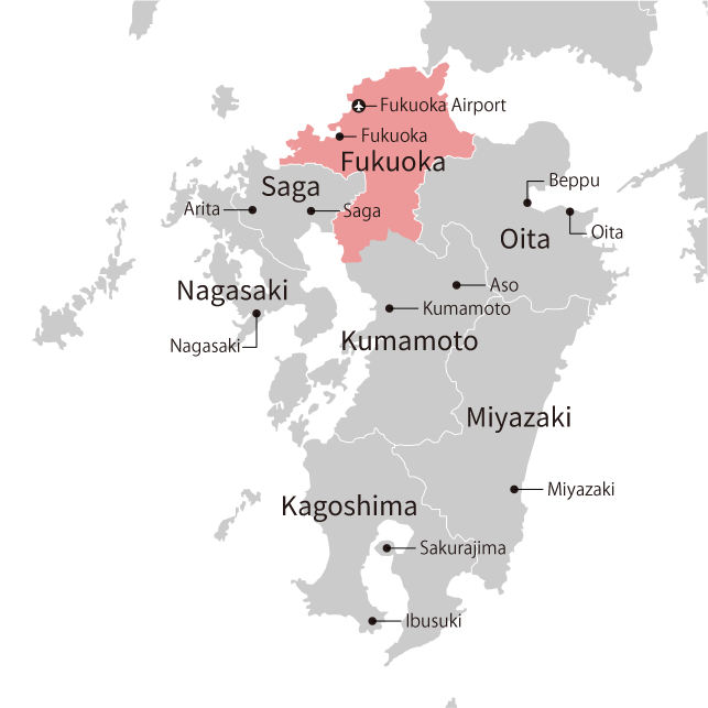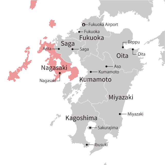 Kyushu consists of seven prefectures (Fukuoka, Saga, Nagasaki, Kumamoto, Oita, Miyazaki, and Kagoshima), and the central Fukuoka Prefecture is very conveniently located, being about 2.5 hours by Shinkansen from Osaka and about 1.5 hours by plane from Tokyo. The Shinkansen connects Fukuoka to Kagoshima, making travel within Kyushu smooth and attractive for visitors from both domestic and international locations. Additionally, by using ferries, you can connect Kyushu with surrounding islands, allowing for a deeper experience of nature and culture. A short journey can lead you to tranquil islands filled with untouched nature. Enjoy the local cuisine and unique tourist attractions while touring Kyushu in each prefecture!