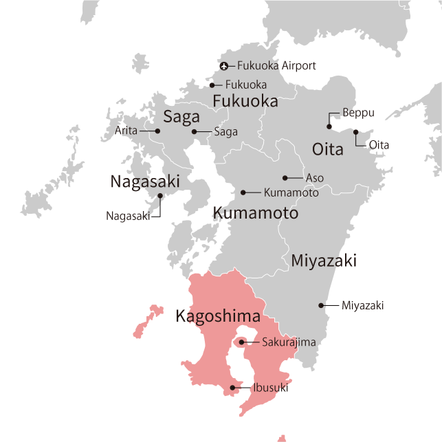 Kagoshima Prefecture is a region known for its attractions, including the active volcano Sakurajima, the beautiful Ibusuki Onsen, and the historic Kagoshima Castle. The local cuisine features delicious black beef, black pork, satsuma-age, and fresh seafood. There are many cultural facilities where you can feel the history of the Satsuma Domain, making it an important place that supported Japan's modern history. Additionally, the islands of Amami Oshima and Yakushima are popular healing spots that captivate visitors.