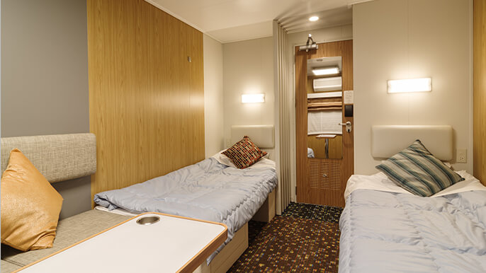 従来のおがさわら丸に比べ、個室が増設されプライベートを重視した寝台をご用意!