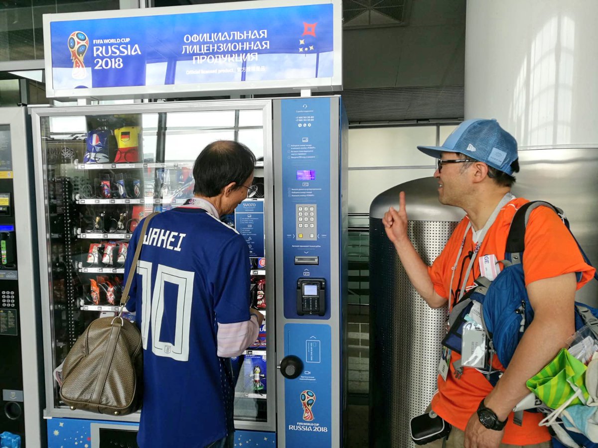 何度も登場のワールドカップグッズ自販機で、ロシアの通貨ルーブル使い切りです